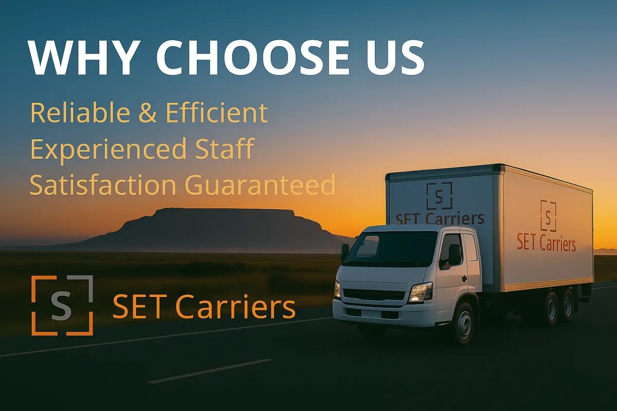 Welcome to SET Carriers — your national partner in household moves, office relocations, car transport, and long-distance distribution across South Africa.