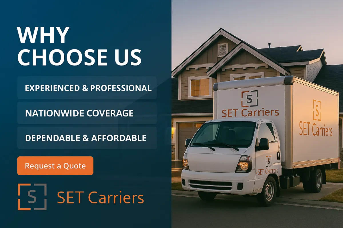 SET Carriers is known for delivering fast, professional, and reliable service with every move. Whether you’re relocating your home or office, transporting commercial goods, or moving a vehicle across the country — we make the process simple and stress-free